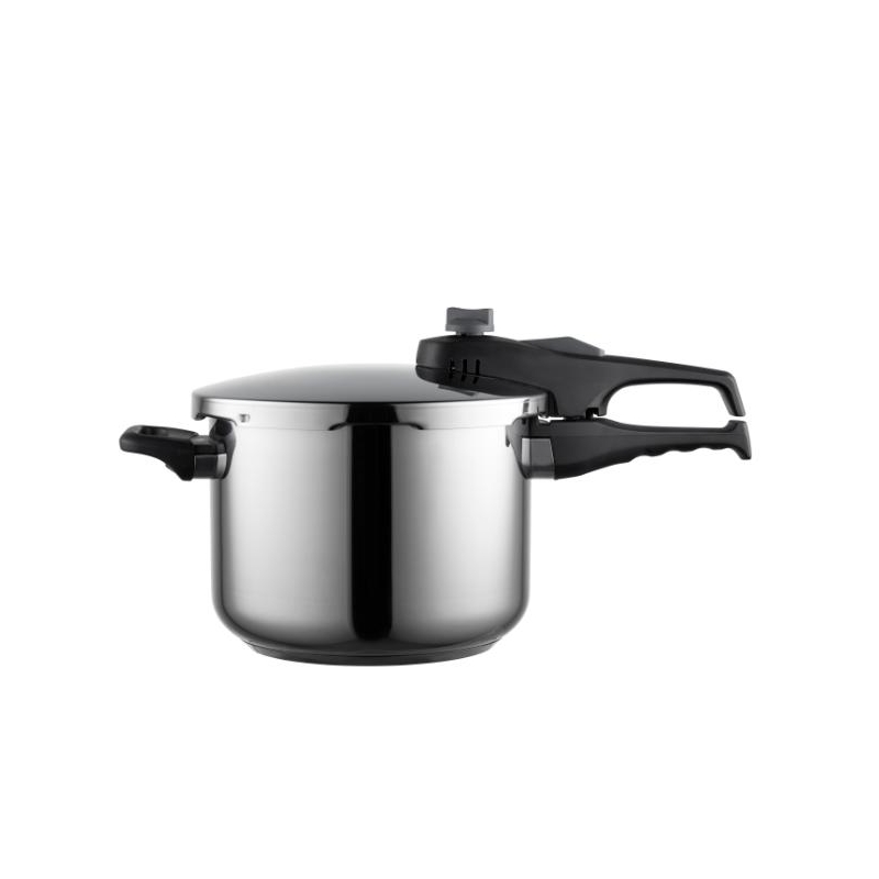 Funktion Pressure Cooker – 6.0 Liter is made of durable stainless steel and ensures fast, energy-efficient cooking. The set includes a lid, detachable basket/insert, and an extra gasket ring.