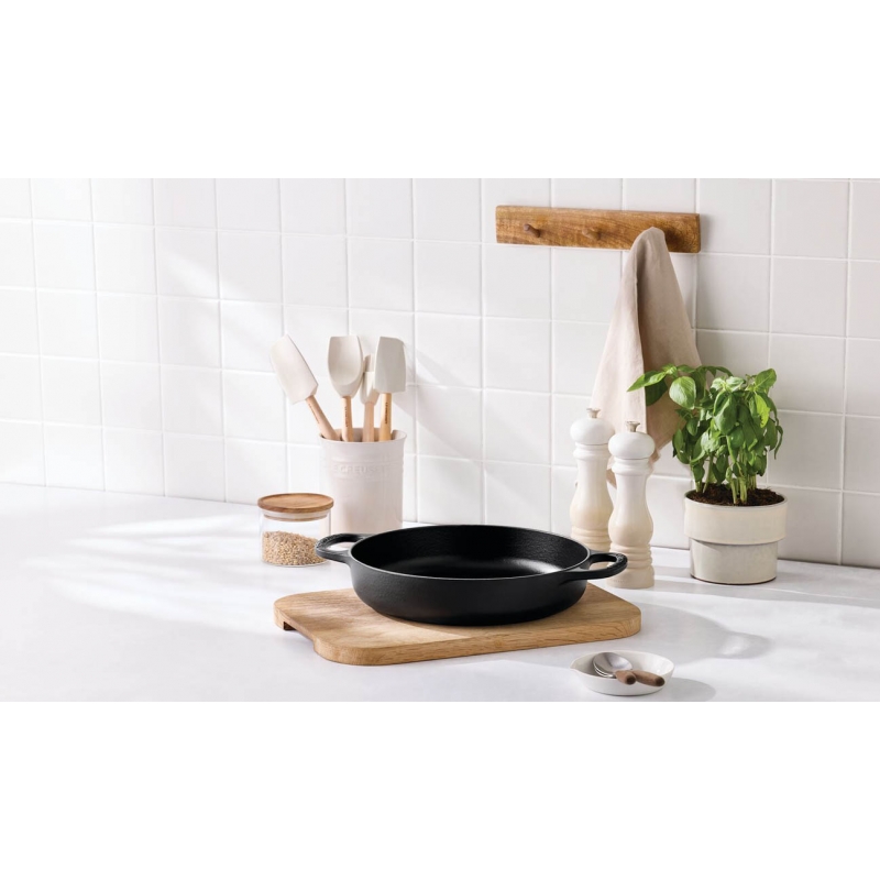 The Le Creuset Signature Cast Iron Everyday Pan is a versatile kitchen essential designed for roasting, frying, and simmering. Its enamelled cast iron construction ensures excellent heat retention and even cooking, while the wide base and gently curved sides make stirring and turning ingredients effortless.