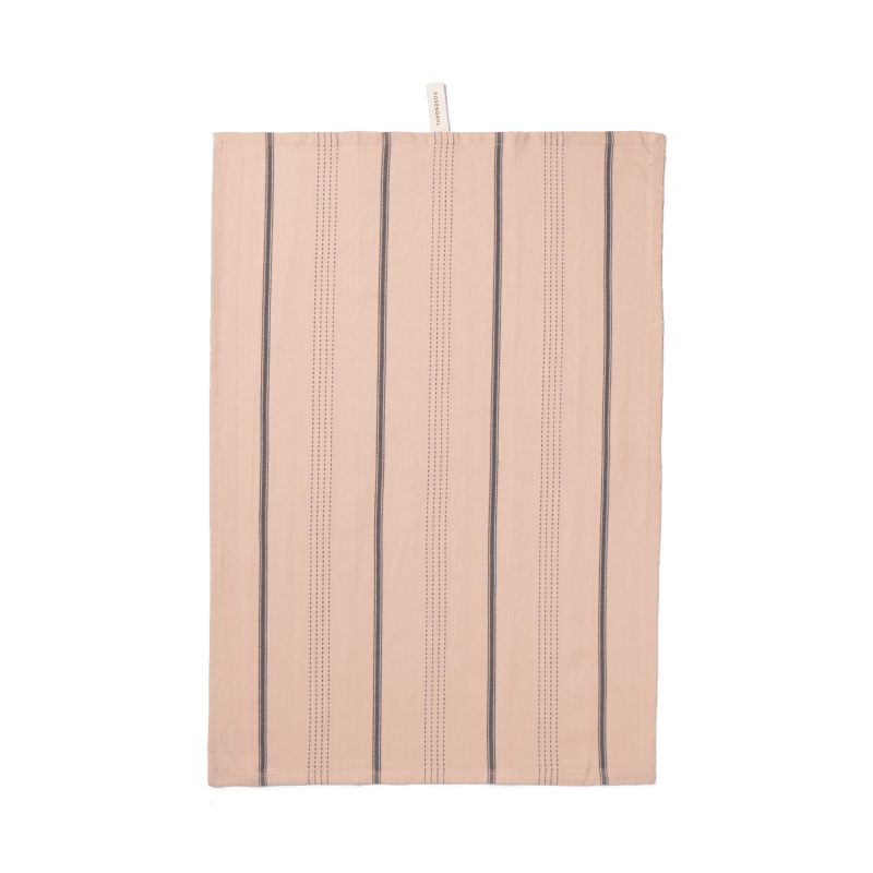The woven structure gives the towel excellent absorbency and fast drying, making it ideal for everyday use — from drying dishes and hands to assisting during cooking and baking. The discreet yet elegant dark grey stripe motif contrasts beautifully with the soft blush base tone, creating a timeless design that suits both modern and classic interiors.