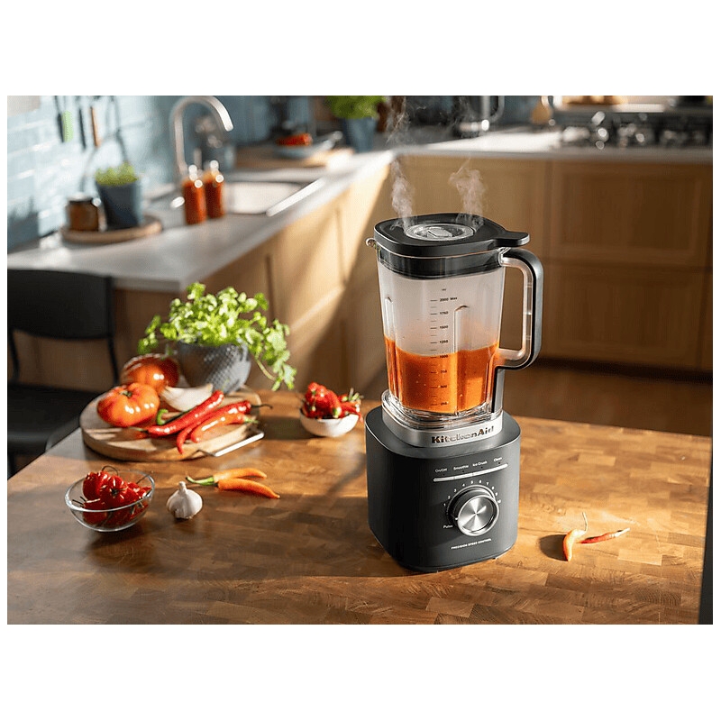 KitchenAidi võimas kolmeosaline segamissüsteem saab hakkama ka kõige raskemate koostisosadega. Sellel on võimas mootor, 360° asümmeetriline lõiketerade disain ja sooneline kann.
