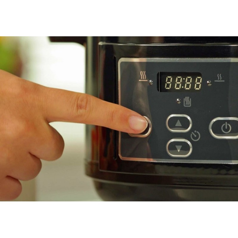 Ekstramugav 4,7 l digitaalne aeglane keetja perelemmikute jaoks. Low/High, 30 min–20 h taimer ja automaatne soojas hoidmine. Ahjukindel keraamiline kauss.
