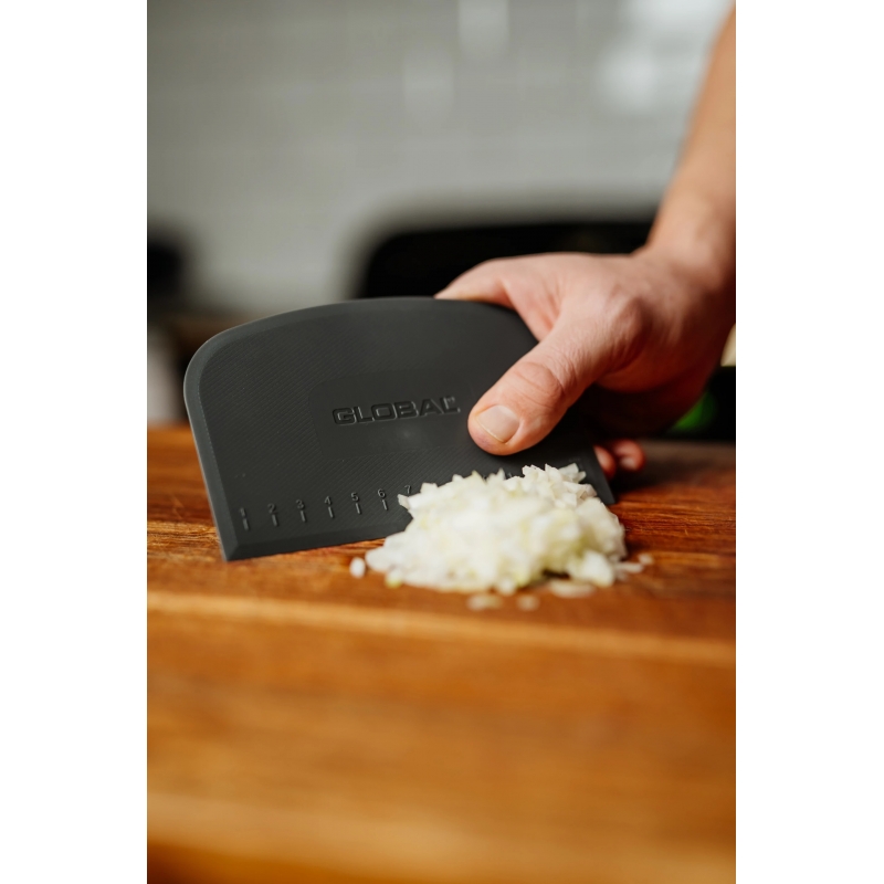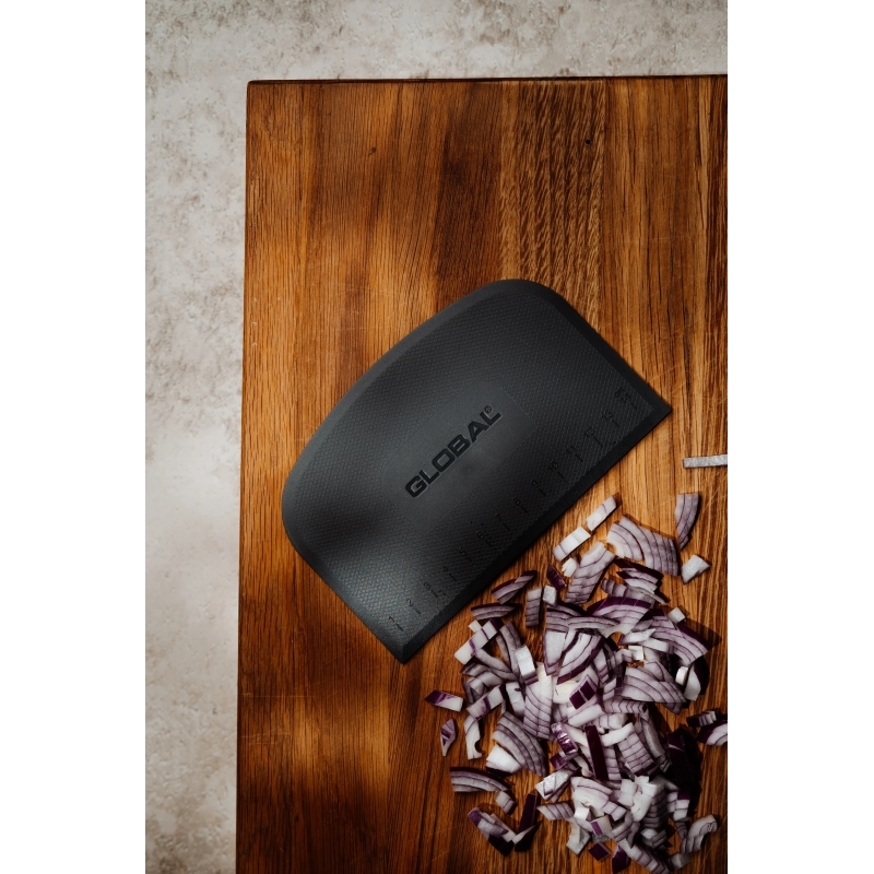 Globali painduv ja kerge kaabits, mis sobib suurepäraselt lõikelaudade ja tööpindade puhastamiseks ning taigna ühtlasteks tükkideks jagamisel tänu mõõteskaalale.
