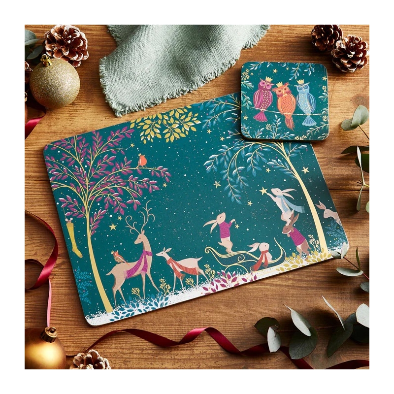 Too oma jõululauale talvine võlu Sara Miller Woodland Tales kohamattide komplekti abil. Komplektis on neli sarnast lauamatti, mis kujutavad mängulisi metsaelukaid ja värvikaid talvepuid, mida täiustavad kaunid kuldviimistlused — just see luksuslik aktsent, mis loob piduliku atmosfääri kogu pühadeperioodiks.