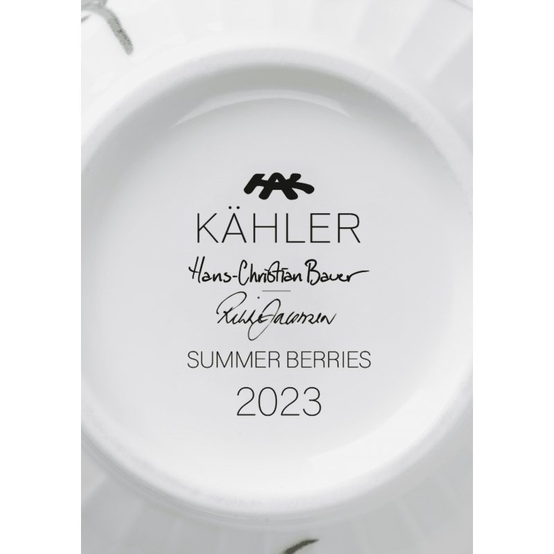 Kähler Hammershøi Summer -muki Berries juhlistaa kesän valoisuutta, lämpöä ja luonnon runsautta. Osa suositusta Hammershøi-sarjaa oleva muki yhdistää sarjan tunnistettavat eleganssia tuovat uurteet ja runolliset vesivärikuvitukset, jotka tuovat luonnon kauneuden osaksi arkea.
