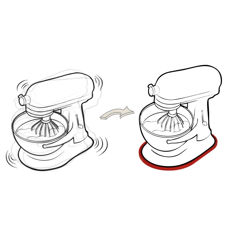 Didelio sukibimo silikonas mažina vibraciją ir saugo stalviršį. Žemo profilio dizainas dera su maišytuvo forma. Pagamintas iš maistinio silikono.