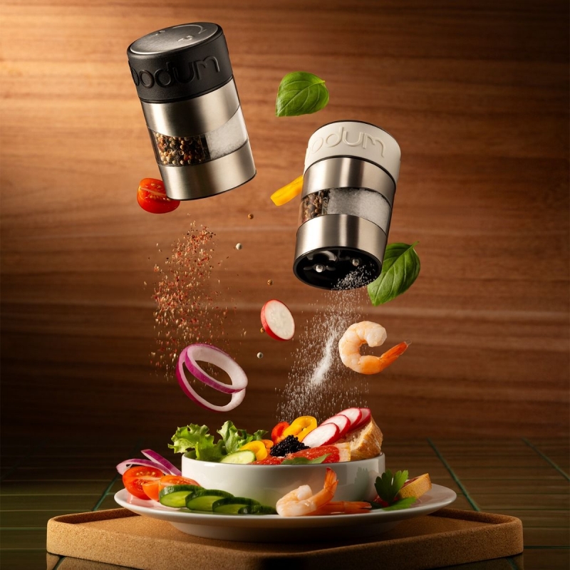Rankinis Bodum Twin druskos ir pipirų malūnėlis leidžia patogiai laikyti abu prieskonius viename įrenginyje, taupant vietą virtuvėje. Keraminis malimo mechanizmas yra ilgaamžis, išlieka aštrus ir nesugeria kvapų, todėl prieskonių skonis išlieka natūralus.