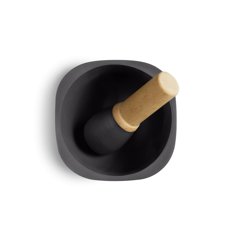 Ergonomiškas grūstuvas su beržo medžio rankena ir keraminiu galu leidžia patogiai trinti, malti ir smulkinti ingredientus. Šiek tiek šiurkštus vidus ir grūstuvo galas suteikia puikų sukibimą efektyviam smulkinimui.