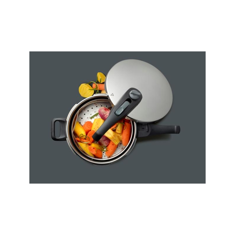 Funktion greitpuodis – 6,0 l pagamintas iš tvirto nerūdijančio plieno, leidžia greitai ir taupiai gaminti maistą. Komplekte yra dangtis, išimamas krepšelis/įdėklas ir papildoma gumos tarpinė.