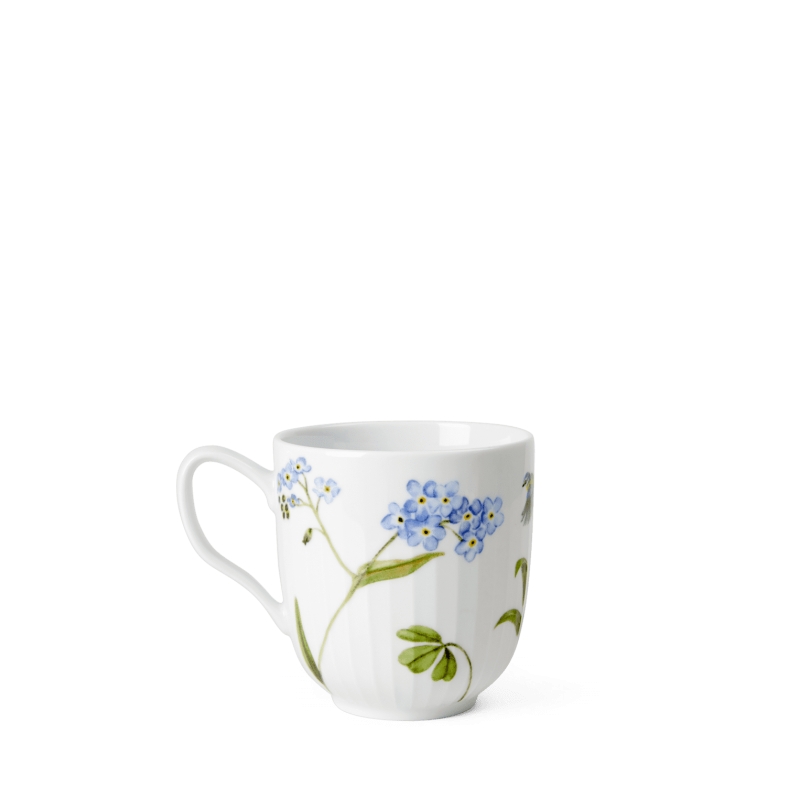 Puodelį puošia subtili neužmirštuolė ir miela zylė, suteikianti švelnų ir žaismingai vasarišką charakterį. 33 cl talpa puikiai tinka kavai, arbatai, karštam šokoladui ar vėsiems vasaros gėrimams — sode, terasoje, balkone arba sodyboje.