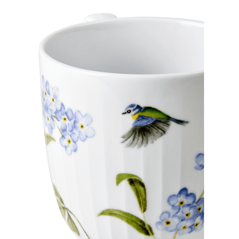 Kähler Hammershøi Summer Forget-Me-Not puodelis sukuria vasarišką ir švelnią nuotaiką. 33 cl talpos puodelis jungia Hammershøi griovelius ir akvarelės iliustracijas su neužmirštuole ir zyle.