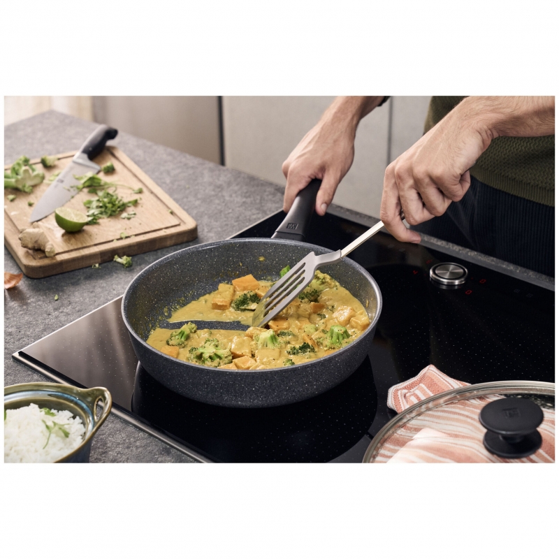 Ergonomiška Stay Cool rankena išlieka vėsi ir saugi liesti. Keptuvė tinka visoms viryklėms, įskaitant indukcines, ir gali būti naudojama orkaitėje iki 150 °C.