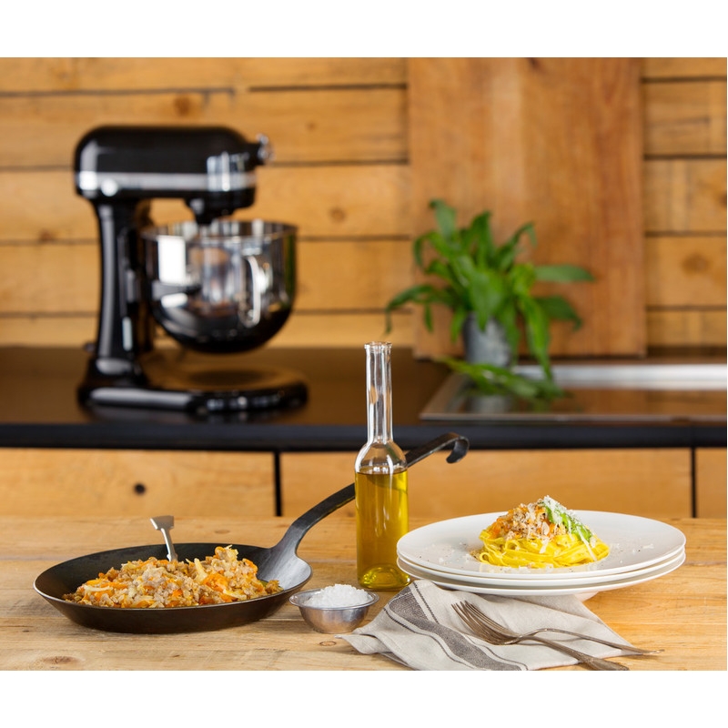 Nerūsējošā tērauda plakanais putotājs ir optimāli piemērots lielajai 6,9 L bļodai. Var mazgāt trauku mazgājamā mašīnā.