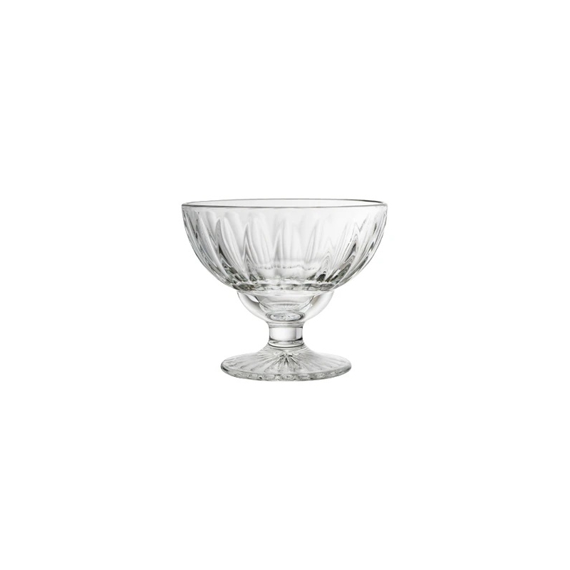 La Rochère saldējuma trauks Elise ienesīs mūžīgu franču eleganci jūsu desertu galdā. Trauks, kas izgatavots no izturīga presēta mehāniskā stikla, ir dekorēts ar mandeļveida līstēm un margrietiņu formas kājiņu, kas skaisti uztver un atstaro gaismu no jebkura leņķa.