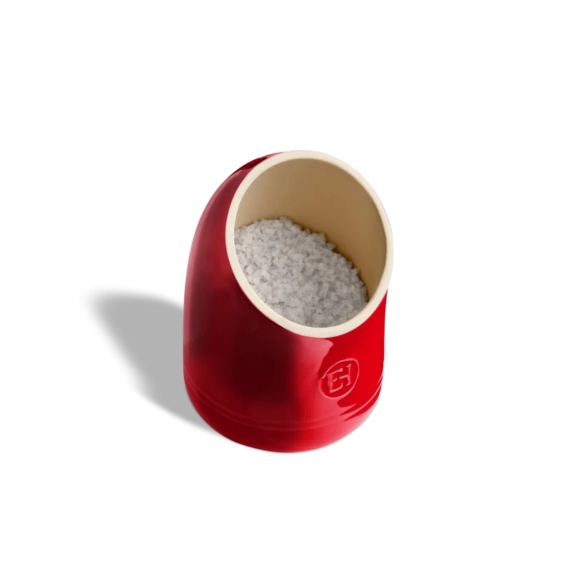 Солонка Emile Henry сочетает практичность и элегантность. Широкое отверстие позволяет быстро брать щепотку соли, а керамика сохраняет её сухой и рассыпчатой.