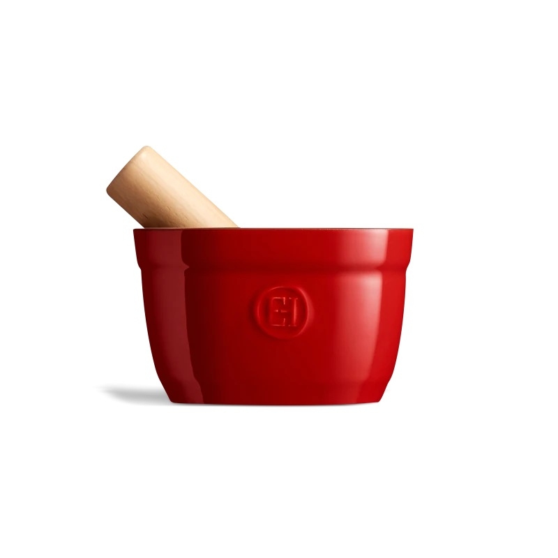 Ступка и пестик Emile Henry раскрывают вкус и аромат ингредиентов. Керамика и деревянная ручка обеспечивают устойчивость и удобство при измельчении.