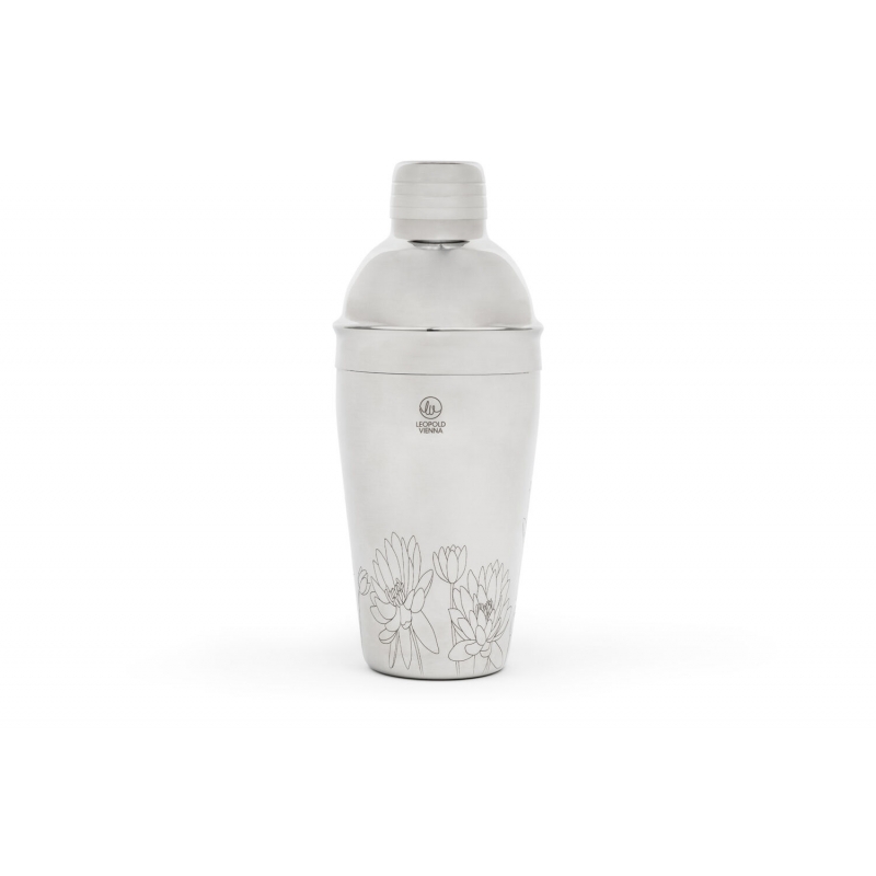 Коктейльный шейкер Leopold Vienna Flowers из нержавеющей стали с элегантной цветочной гравировкой и встроенным ситечком. Объём 500 мл. Подходит для посудомоечной машины.